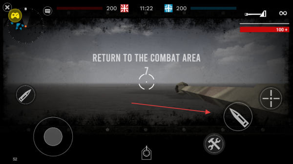 4、进入战斗界面,通过左侧摇杆移动,点击右侧攻击按钮发射弹药攻击敌方目标。