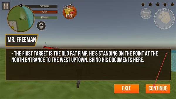 3、查看任务提示,点击CONTINUE继续推进任务。