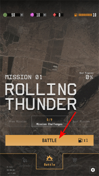 1、在任务界面点击BATTLE按钮,这是开启滚动雷霆任务战斗的关键操作,点击后会进入战场场景,展开军事作战的核心体验。