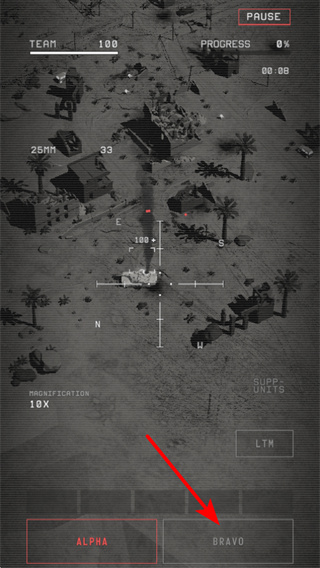 2、进入战场界面后,点击BRAVO选项切换作战单位,这是调整战斗配置的基础操作,切换后可启用对应的作战火力,提升输出能力。