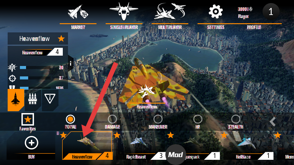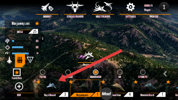 1、在战机选择界面,点击选中想要驾驶的战机,比如Heavenflow或Roguespark,为战斗做好准备。