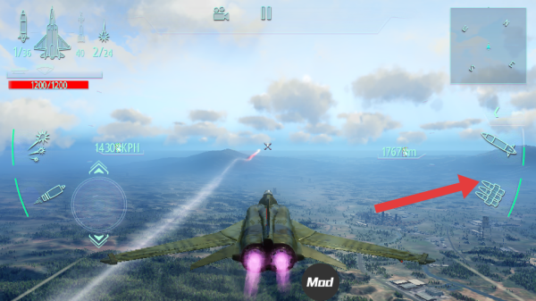 4、飞行寻找敌机的过程中,查看周围的攻击的按键,点击右侧的导弹群按钮,对目标造成大量伤害。