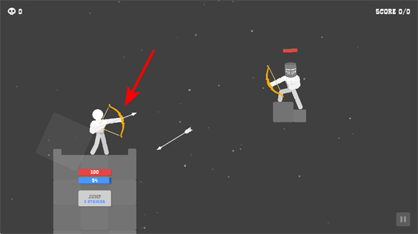 1、开始作战,操控弓箭手瞄准敌方单位方向射击,这是击败敌人、积累分数核心操作,精准调整射击角度。