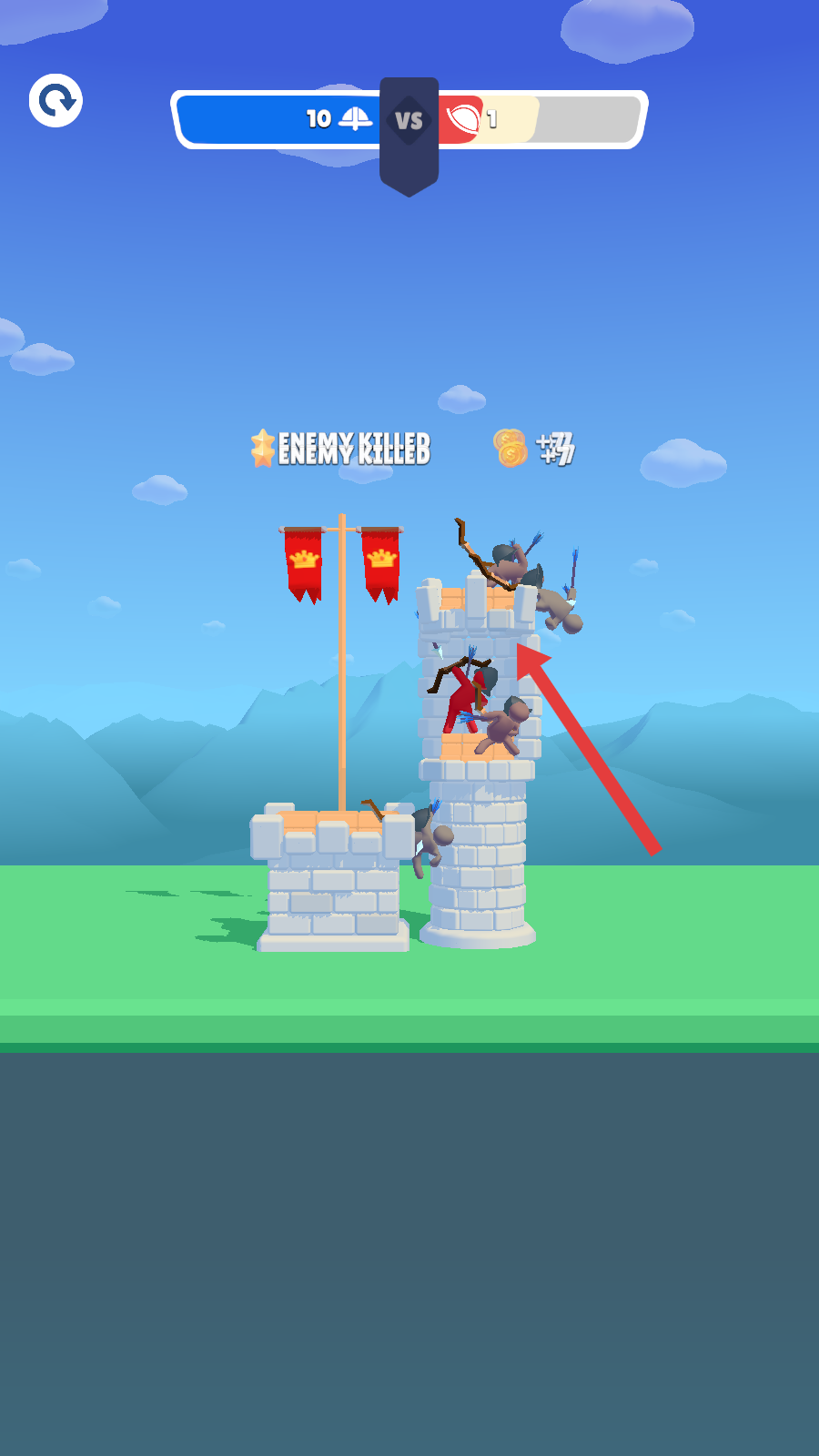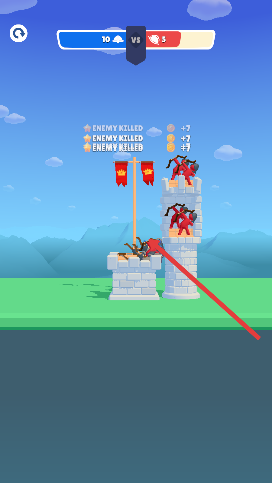 3、持续攻击敌方箭塔,消灭敌方弓箭手,逐步占领敌方建筑,扩大己方的控制区域,取得战斗优势。