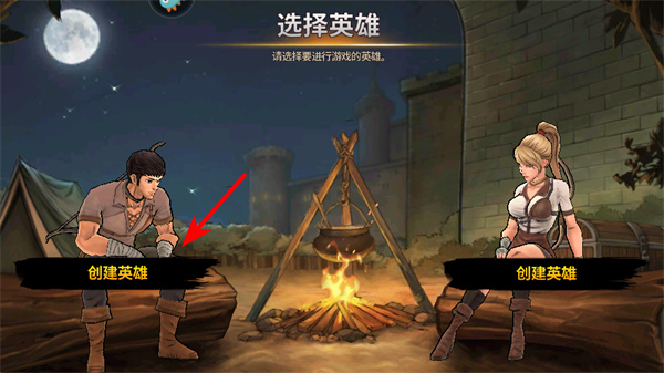 2、在英雄选择场景中点击创建英雄按钮,这是确定游戏角色的基础操作,选定后会完成英雄的创建,推进后续的训练与战斗环节。