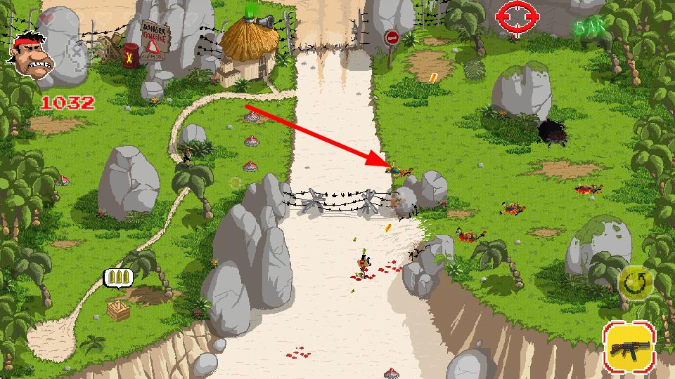 2、瞄准箭头指向的敌人,发射子弹进行攻击,消灭敌人可获取金币和经验,推进进程。