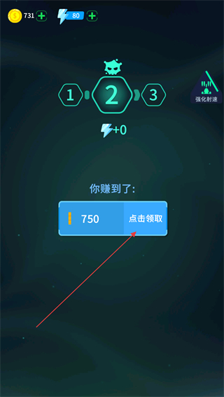 4、通关后点击点击领取,获取本次关卡的750金币奖励。