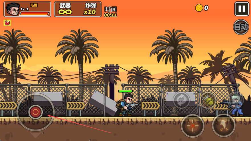 3、持续战斗,在规定时间内消灭关卡内所有敌人,按照箭头指示一直前往消灭。