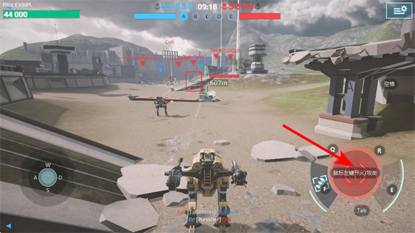 3、点击开火按钮对敌方机甲发起攻击,这是造成伤害的核心操作,持续攻击可消耗敌方机甲的血量,逐步取得战斗优势。