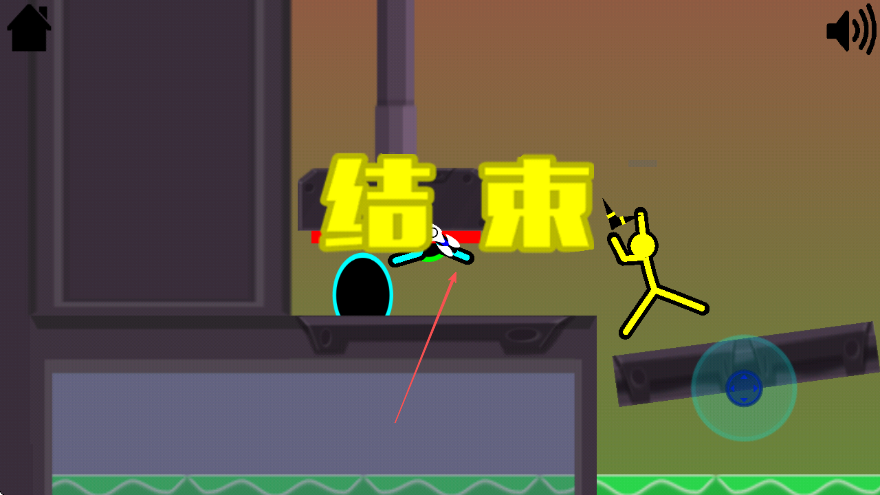 4、若蓝色火柴人生命值归零游戏显示结束、需重新开始游戏争取击败对手。