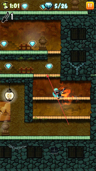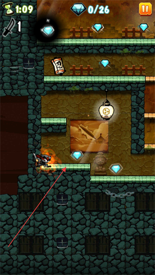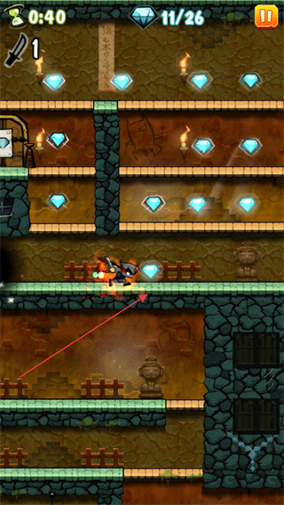 1、操控忍者移动,收集场景中的钻石,当前目标为收集26颗钻石,同时注意计时进度。