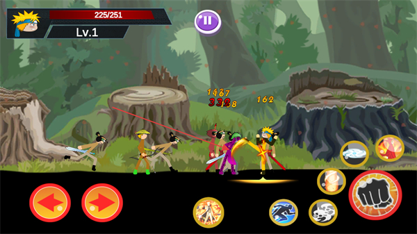 以火柴人风格还原众多经典火影角色,每个角色都保留原作核心特质与专属技能,造型简约却辨识度十足,满足粉丝对喜爱角色的操控期待。