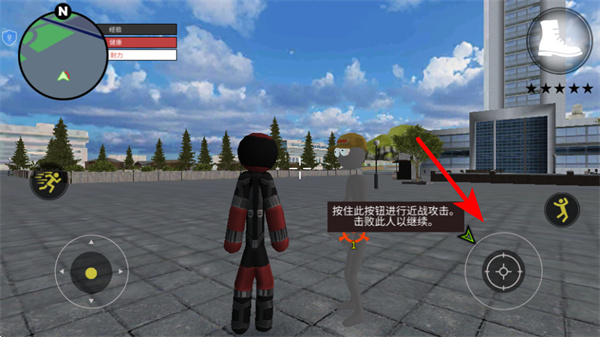 2、遇到目标敌人时,按住右侧的攻击按钮发起近战攻击,持续攻击可击败敌人推进流程,同时留意自身状态,避免在残血时贸然发起战斗。