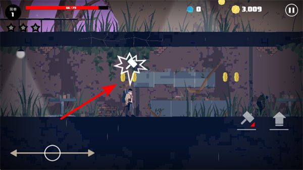 2、在关卡中点击武器按钮可使用工具,使用时需瞄准可破坏的物体,破坏获取金币和资源。