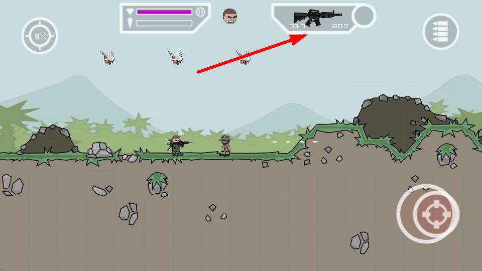 3、点击右侧射击按键,可发射子弹攻击目标,在战斗中消灭敌人,推进游戏的进程。
