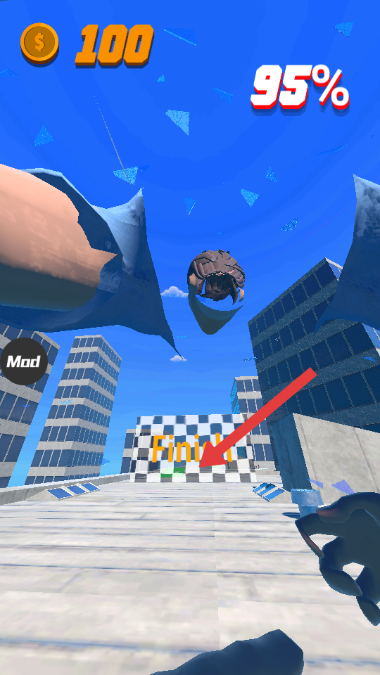 3、持续向标有Finish的终点方向奔跑,接近终点时保持基本的奔跑速度,争取快速抵达完成关卡。