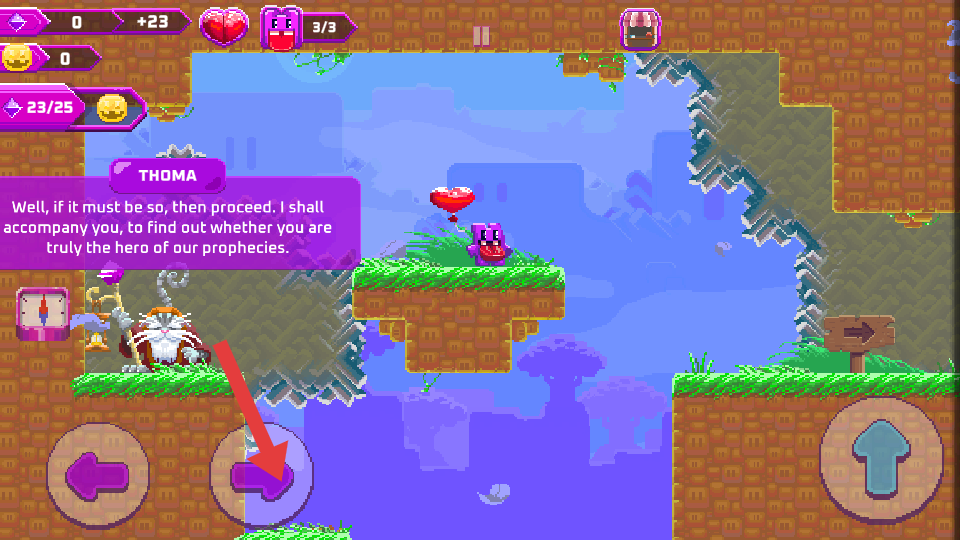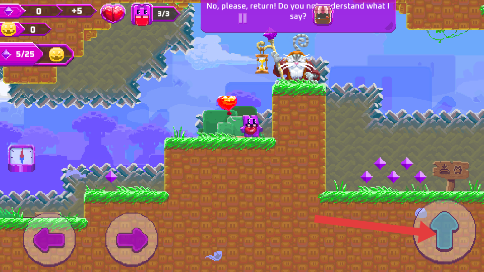 2、在需要向上移动,到达高处平台或躲避下方危险时,点击箭头指向的向上箭头按键,让角色向上跳跃。