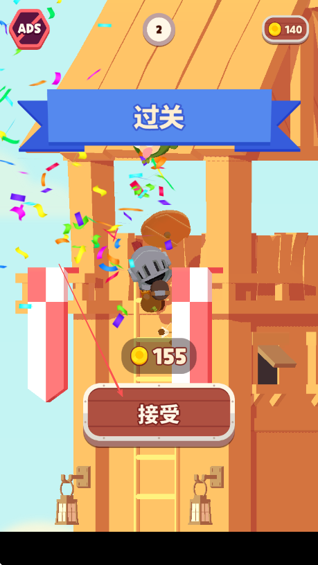 4、成功躲避攻击并到达指定位置后,点击接受按钮,完成关卡。