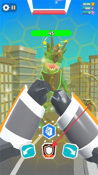 2、面对着敌方机甲,点击或长按下方拳头按键进行蓄力瞄准攻击。