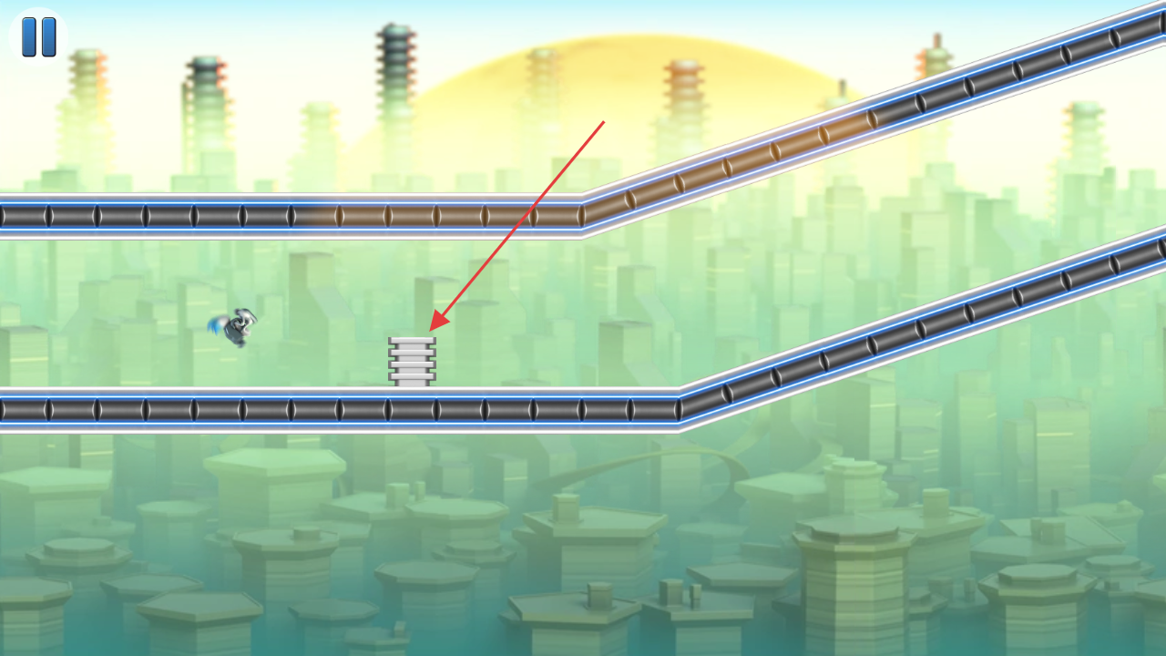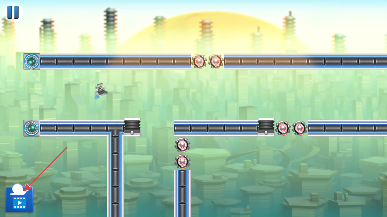 3、关卡中遇到管道间的衔接结构时,点击屏幕控制角色进行重力翻转躲避障碍,借助其实现管道层之间的切换,继续推进游戏进程。