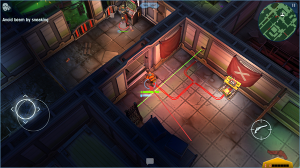1、躲避红色激光束,利用潜行技巧如蹲伏移动通过激光区域,避免被发现。