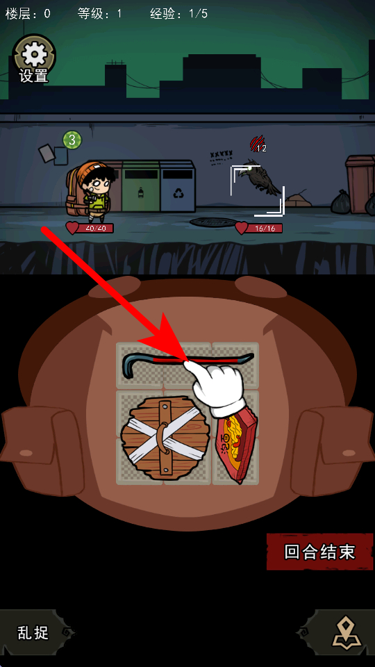 3、进入关卡后,会遇到敌人,此时可从道具栏中选取合适的道具,比如钩子等,运用道具与敌人展开对抗,争取击败敌人。