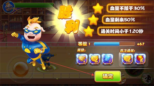 4、战斗胜利后,点击确定,领取奖励,继续挑战新关卡。