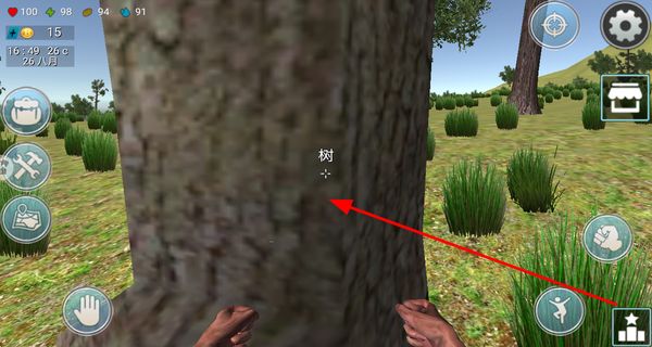 4、使用装备的石斧砍伐树木,获取木材资源,用于制作工具或建筑,助力荒野的生存和发展。