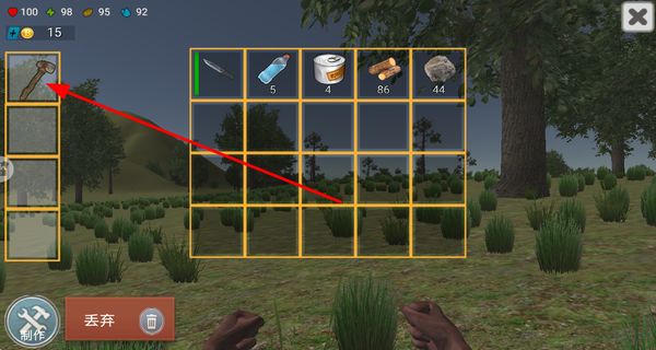 3、将制作好的石斧装备到角色身上,提升角色的采集和战斗能力,优化荒野求生的表现。