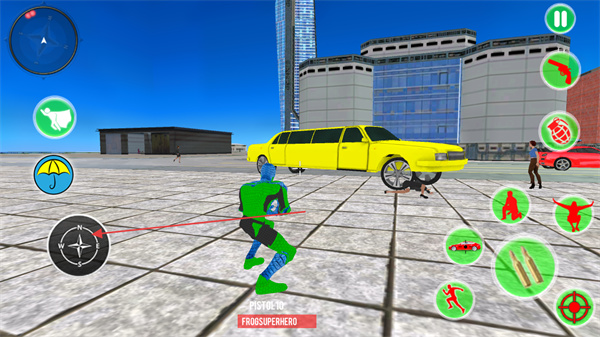 1、操控角色在城市场景移动,利用右侧技能按钮,如枪械等,攻击敌人完成任务。