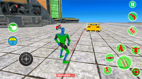 采用虚拟摇杆控制移动,搭配武器切换、绳索发射等按键,操作逻辑清晰,射击与移动衔接流畅,新手快速熟悉就能灵活施展英雄技能与战斗技巧。