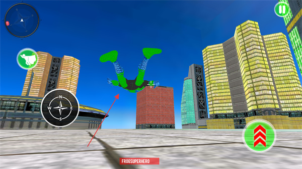 4、点击飞行技能按钮,让角色在空中飞行,在高楼间穿梭探索城市。