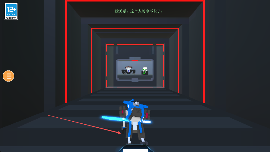 1、进入游戏后,操控蓝色机器人沿着通道前进,留意通道尽头可能出现的敌人和提示信息。