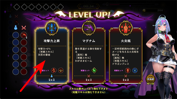 4、升级后选择对应的能力卡片,这是强化角色的重要操作,选定后可获得属性提升或新技能,增强后续战斗中的实力,更高效地完成关卡目标。