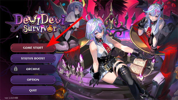 1、在游戏主界面点击GAME START选项,这是进入游戏关卡的关键操作,点击后会加载对应的战斗场景,开启恶魔幸存者的冒险流程。