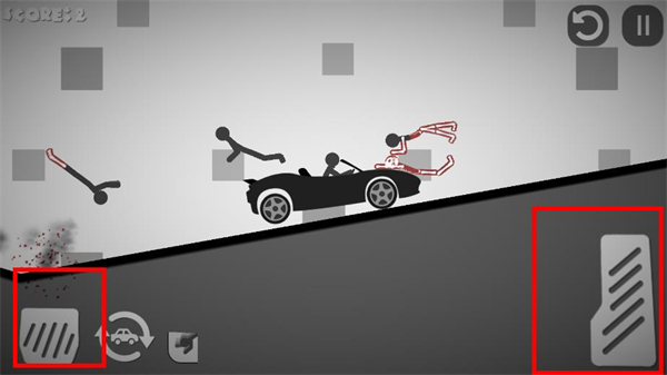 2、通过左下角刹车和右下角油门控制载具移动,遇到合适时机可撞击火柴人。