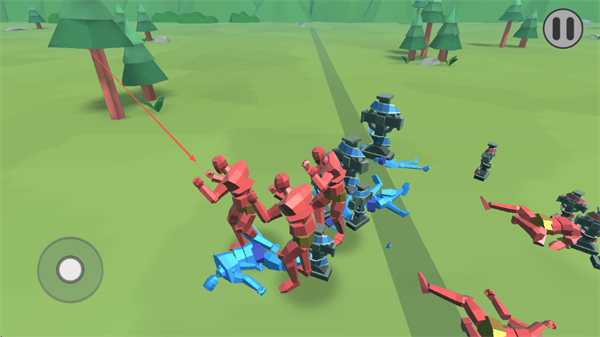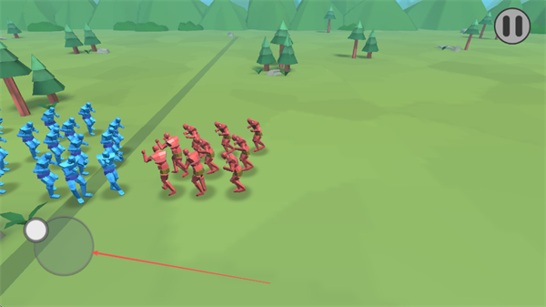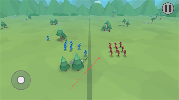 2、操控蓝色兵种在草地场景移动,与红色兵种在中线附近对峙,准备发起进攻。
