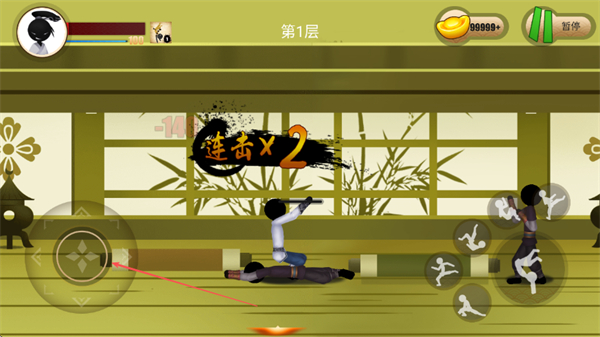 3、通过左侧摇杆灵活移动,持续攻击敌人,触发连击×2,保持战斗优势。