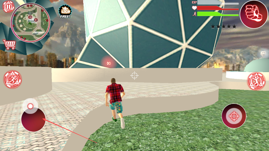 3、通过左下角的虚拟摇杆控制角色移动,前往目标地点。