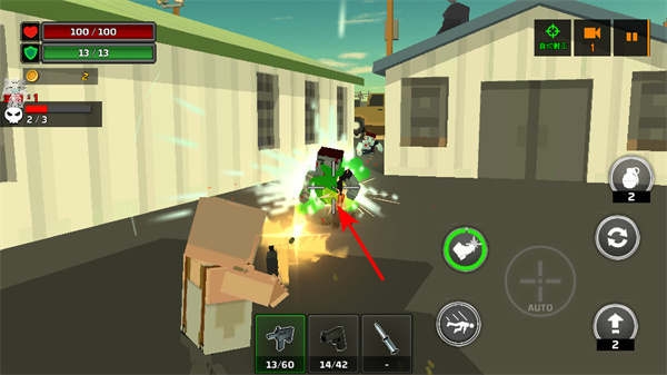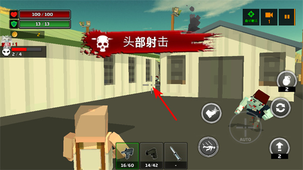 2、在射击场景中瞄准僵尸发起攻击,推进关卡的核心操作,攻击时需关注僵尸的移动速度和自身的弹药数量。