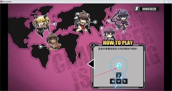 2、出现蓝色拳套时,按相反方向的键进行格挡,防御对手攻击。