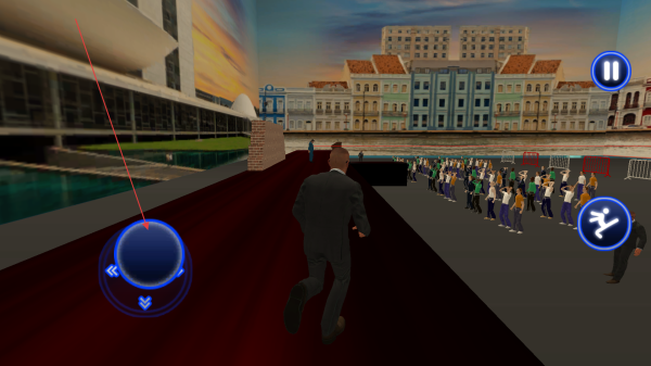 4、遇到紧急情况或需要快速撤离时,点击屏幕右下角的奔跑按钮,操控总统加速移动摆脱危险。