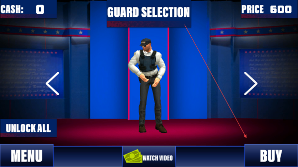2、进入守卫选择界面,若现金足够点击BUY购买守卫,也可点击WATCHVIDEO获取现金。