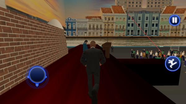 3、进入游戏场景,通过屏幕左下角的虚拟摇杆控制总统移动,躲避可能的危险。