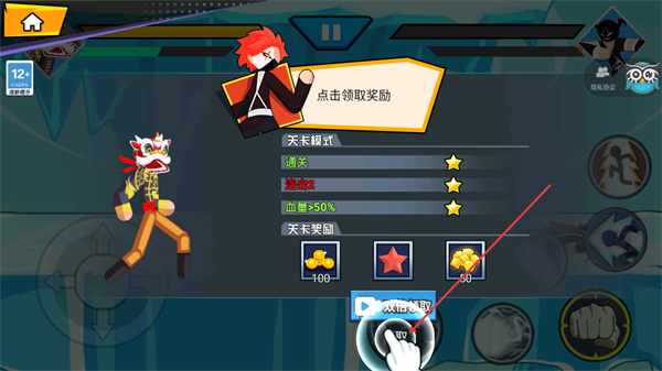 4、完成关卡挑战通关后按照提示点击领取奖励,操作对应按钮可领取关卡通关对应的金币星星等奖励。