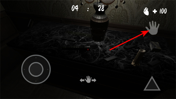 4、在桌面场景中,点击手部图标与桌上物品互动,可获取道具或线索,这是用来对付敌人、推进游戏的核心操作之一。