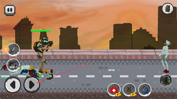 2、移动角色靠近残血僵尸,持续射击击倒剩余目标,推进战斗进度。
