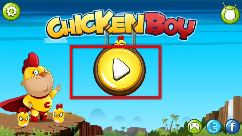1、在小鸡超人游戏首页,点击黄色播放按钮,进入游戏关卡界面。