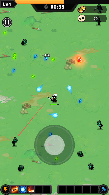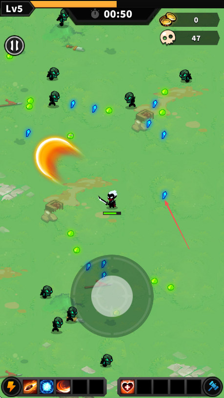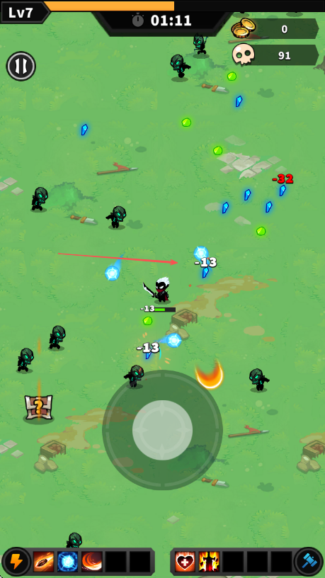 2、注意屏幕上方的时间计时,在限时内尽可能多地击败周围的敌人,获取经验升级。