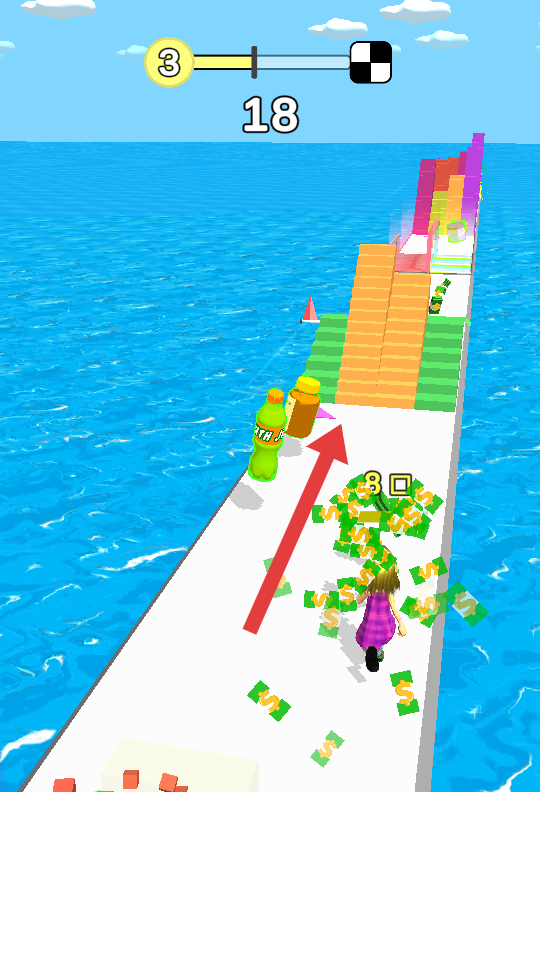 1、基础操控与跑道移动:进入关卡开始界面后,按照提示左右滑动手指,操控角色在跑道上前进,通过单手操作切换路径,适配碎片化时间的娱乐需求。